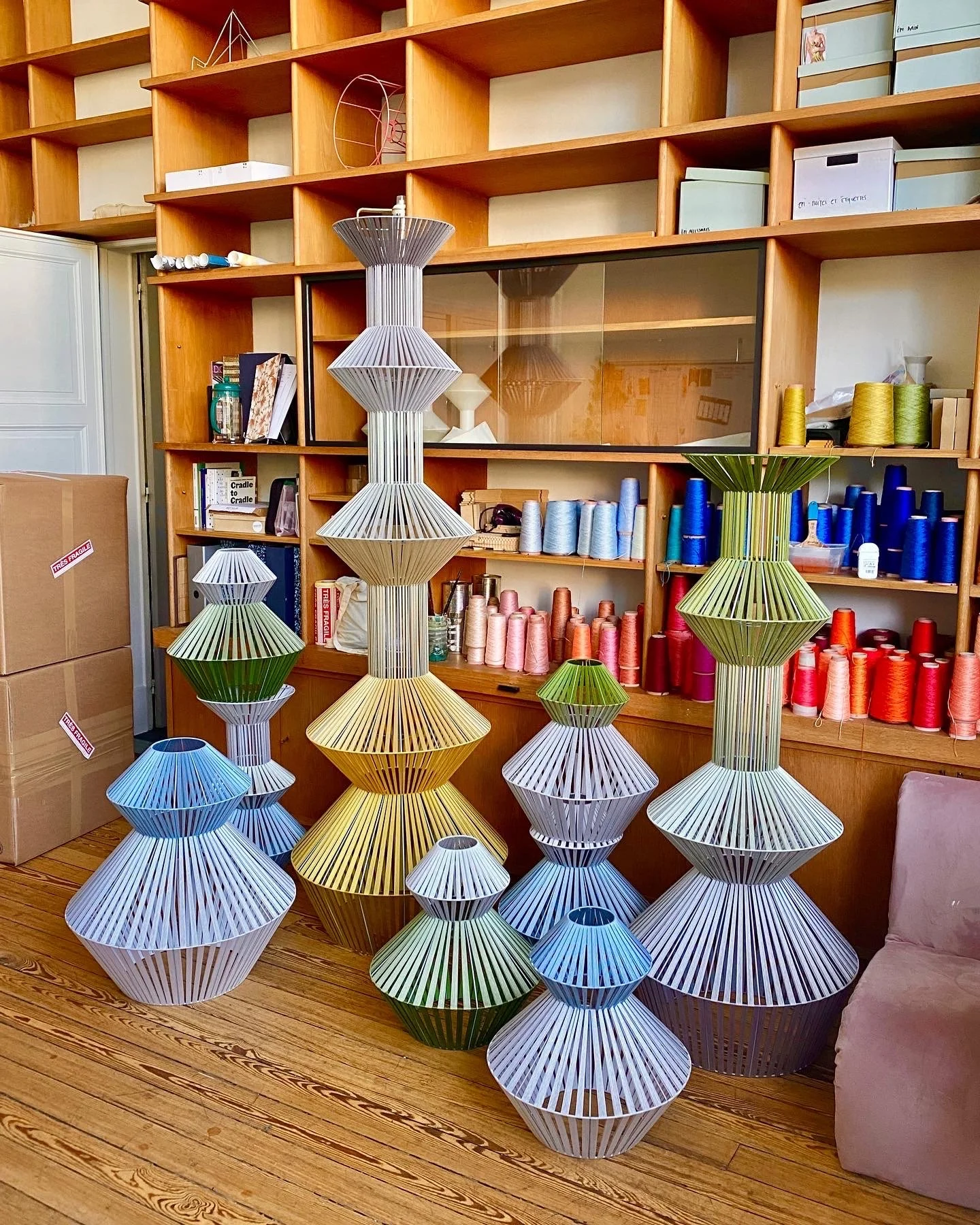 Chacune de ces lampes est unique et faite sur commande. Vous pouvez choisir les couleurs des fils.